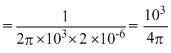 A capacitor of capacitance 2μF is connected in the tank circuit of an oscillator oscillating with a frequency of 1 kHz. If the current flowing in the circuit is 2 m A, the voltage across the capacitor will be :
