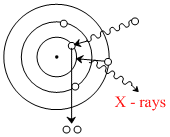 When electron strike a metal target of high melting point with high velocity, it knocks out inner electrons of the atoms of the target material. to fill up this up this vacancy, electrons from higher energy level make transition to lower level resulting in emission of radiation.If target material has very high atomic number then the emitted radiation is X-ray.