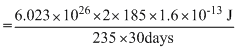 (∵ 1MeV = 1.6 × 10-13J, 30 days = 30 × 24 × 60 × 60sec)