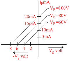 The variation of anode current in a triode valve corresponding to a change in grid potential at three different values of the plate potential is shown in the given figure. The mutual conductance of triode is