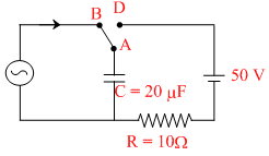 - i × 10 = 0Final charge on C after shifting the switch, Q′= CV = 20 × 10-6 × 50 = 10-3 C.