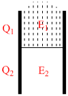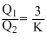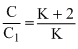 A parallel plate capacitor has a dielectric slab of dielectric constant K between its plates that covers 1/3 of the area of its plates, as shown in the figure. The total capacitance of the capacitor is C while that of the portion with dielectric in between is C1. When the capacitor is charged, the plate area covered by the dielectric gets charge Q1 and the rest of the area gets charge Q2. The electric field in the dielectric is E1 and that in the other portion is E2. Choose the correct option/options, ignoring edge effects.