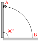A wire, which passes through the hole in a small bead, is bent in the form of quarter of a circle. The wire is fixed vertically on ground as shown in the figure. The bead is released from near the top of the wire and it slides along the wire without friction. As the bead moves from A to B, the force it applies on the wire is