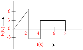 The force F acting on a particle of mass m is indicated by the force-time graph shown below. The change in momentum of the particle over the time interval from zero to 8 s is