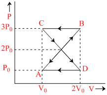 A thermodynamic system undergoes cyclic process ABCDA as shown in figure. The work done by the system in the cycle is