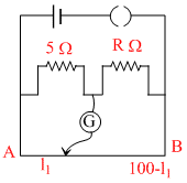 The resistances in the two arms of the meter bridge are 5 Ω and R Ω , respectively. When the resistance R is shunted with an equal resistance, the new balance point is at 1.6 I1. The resistance R, is :