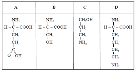 Which one out of A - D given below correctly represents the structural formula of the basic aminoacid?