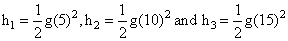 A stone falls freely under gravity. It covers distances h1, h2 and h3 in the first 5 seconds, the next 5 seconds and the next 5 seconds respectively. The relation between h1, h2 and h3 is :-