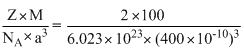 An element (atomic = 100 g/mol) having bcc structure has unit cell edge 400 pm. Density of the element is
