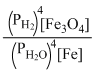 Steam reacts with iron at high temperature to give hydrogen gas and Fe3O4(s). The corrent expression for the equilibrium constant is
