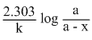 A reaction which is of first order w.r.t reactant A, has a rate constant 6 min-1. If we start with [A] = 0.5 mol L-1, when would [A] reach the value of 0.05 mol L-1