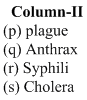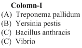 Plague is a deadly infection disease that is caused by the enterobacteria Yersinia pestis (formely know as Pasteurella pestis) Anthrex is infectious bacterial disease involves skin, gestrointestinal tract or lungs. Syphillis is sexually transmitted inferection caused by bacterium Treponena pallidium. Cholera is an infection in the small intestine caused by the bacterium Vibrio cholerale that causes a large amount of watery doarrhea and vomiting.