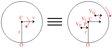 A disc is rolling (without slipping) on na horizontal surface. C is its center and Q and P are two points equidistant from C. Let Vp′ Vq′ and Vc′ be the magnitude of velocities of point P,Q and C respectively, then