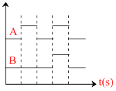 The real time variation of input singles A and B are as shown below. If the inputs are fed into NAND gate, then select the output single from the following.