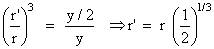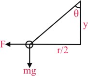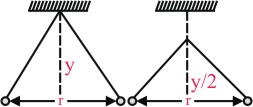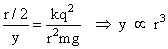 Two pith balls carrying equal charges are suspended from a common point by strings of equal length, the equilibrium separation between them is r. Now the strings are rigidly clamped at half the height. The equilibrium separation between the balls now become :