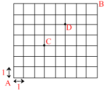 A person wants to reach from A to B by moving upward or rightward direction only taking one unit step at time, then number of shortest path available to him if he must pass through C but not through D -