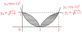 and √y = |x - 1| is -