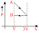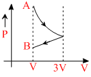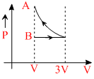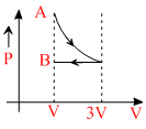 One mole of an ideal gas goes form an initial state A to final state B via two processes: It first undergoesisothermal expansion from volume V to 3V and then its volume is reduced from 3V to V at constantpressure. The correct P-V diagram representing the two processes is:
