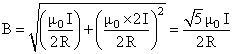 Two similar coils of radius R are lying concentrically with their planes at right angles to each other. Thecurrents flowing in them are I and 2I, respectively. The resultant magnetic field induction at the centrewill be