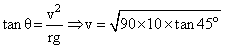 A car of mass 1000 kg negotiates a banked curve of radius 90 m on a frictionless road. If the bankingangle is 45o, the speed of the car is