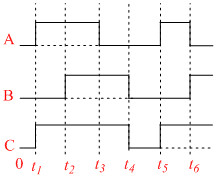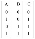 The figure shows a logic circuit with two inputs A and B and the output C. The voltage wave formsacross A, B and C are as given. The logic circuit gate is