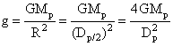 A spherical planet has a mass Mp and diameter Dp. A particle of mass m falling freely near the surfaceof this planet will experience an acceleration due to gravity, equal to