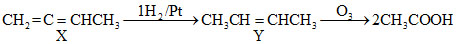Formation of only CH3COOH by ozonolysis indicates that the compound Yshould be CH3CH = CHCH3 which can be formed by all of the the three given compounds