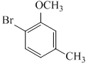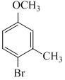 The reaction is an example of electrophilic aromatic substitution.Although both OCH3 and CH3 groups are o, p-directing, the OCH3 group dominates. Product (d) is favoured because the new coming group (Br) experiences least hindrance.