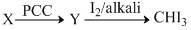 Compound Y must give iodoform test. Further since Y is obained by the oxidation of X which must be an alcohol (CH3CH2OH) and thus Y is CHO.