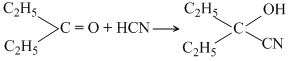 Ketones reacts with HCN to form addition product, knon as cynothdrin compounds.