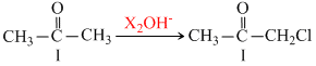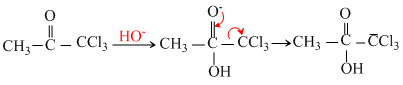 If we observe the haloform reaction carefully, we see that - COCH3 group is first halogented to the trihalo- COCX3 through monohalogeno ang dihalogeno compound. It is the - COCX3 patr which then undergoes nuclhilic adition. the produccy easily loses-CX3 since it is a very good leaving group.