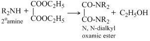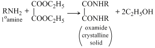 The 1o amineforms corresponnding subxtituited oxamide which is a crystalline solid while 2o amine forms a diehyl oxamic eater which is a liquid and 3o amine does not react with diethyl oxalate since it does not contain a replacable hyrogen atom.