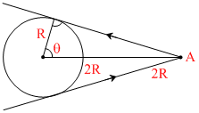 A non relativistic α particle is moving along a circle of radius R with a constant angular velocity ω. Point A lies in the same plane at a distance 2R from the centre. Point A records magnetic field produced by α particle. If the minimum time interval between two successive times at which A records zero magnetic field is ′t′, find the angular speed ω, in terms of t.