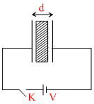 The area of the plates of the capacitor shown in figure is S. The dielectric constant and resistivity of the material of the slab inserted in the capacitor are K = 1 and ρ respectively. The emf of the ideal cell is V. The current flowing through dielectric slab immediately after the key is switched on is