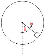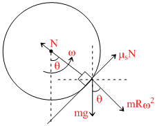 A small block is placed inside a cylinder of radius R that rotates with angular speed ω about a horizontal axis as shown in figure. The maximum angle q reached by the block before it starts to slip is given by equation.
