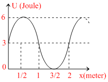 Potential energy (sinusoidal curve) is shown graphically for a particle. The potential energy does not depend on y and z coordinates. The maximum value of conservative force (in magnitude) for range 0 < x < 2 is (βπ). Find value of β [Here this force is corresponding to above potential energy and all units are in S.I.]