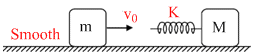 A block of mass m moving with a velocity v0 collides with a stationary block of mass M at the back of which a spring of spring constant K is attached, as shown in the figure. Select the CORRECT alternative (s) :
