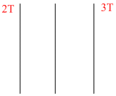 Three very large plates of same area are kept parallel and close to each other. They are considered as idealblack surfaces and have very high thermal conductivity. The first and third plates are maintained attemperatures 2T and 3T respectively. The temperature of the middle (i.e. second) plate under steady statecondition is