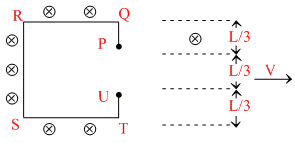 A wire frame PQRSTU is moving horizontally with velocity v in a uniform magnetic field B acting perpendicular to its plane as shown in the figure. Choose the INCORRECT statement.