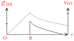 (r)| and the electric potential V(r)with the distance r from the centre, is best represented by which graph?