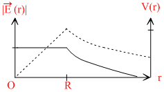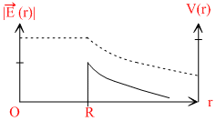(r)| and the electric potential V(r)with the distance r from the centre, is best represented by which graph?Options