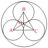 Inside the unit circle S = {(x, y)| x2 + y2 = 1} there are three smaller circles of equal radius a, tangent to each other and to S. The value of ′a′ equals -