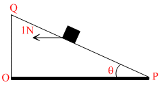 A small block of mass of 0.1 kg lies on a fixed inclined plane PQ which makes an angle θ with thehorizontal. A horizontal force of 1 N acts on the block through its centre of mass as shown in the figure.The block remains stationary if (take g = 10 m/s2)