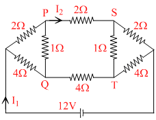 Nodes P and Q are equipotential and nodes Sand T are equipotential from wheatstone bridge,no current passes through PQ and ST.