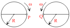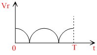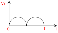 Two identical discs of same radius R are rotating about their axes inopposite directions with the same constant angular speed ω Thediscs are in the same horizontal plane. At time t = 0, the points Pand Q are facing each other as shown in the figure. The relativespeed between the two points P and Q is vr. In one time period (T)of rotation of the discs, vr as a function of time is best representedby