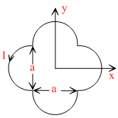A loop carrying current I lies in the x-y plane as shown in the figure. The unit vector