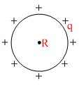 On the shell q charge is uniformly distributed over its surface, it behaves as conductor.