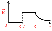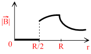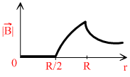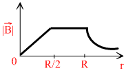 An infinitely long hollow conducting cylinder with inner radius R/2 and outer radius R carries auniform current density along its length. The magnitude of the magnetic field,