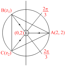 One vertex of the triangle of maximum area that can be inscribed in the curve |z - 2i| = 2 is 2 + 2i, remaining vertices can be -