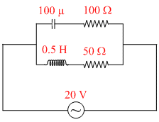 In the given circuit, the AC source has ω = 100 rad/s. Considering the inductor and capacitor to be ideal, the correct choice(s) is (are)